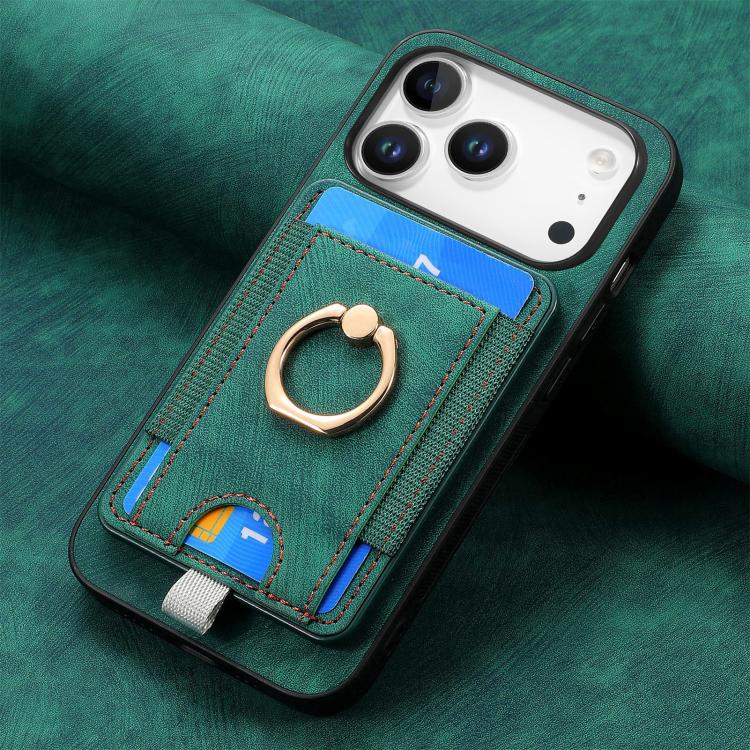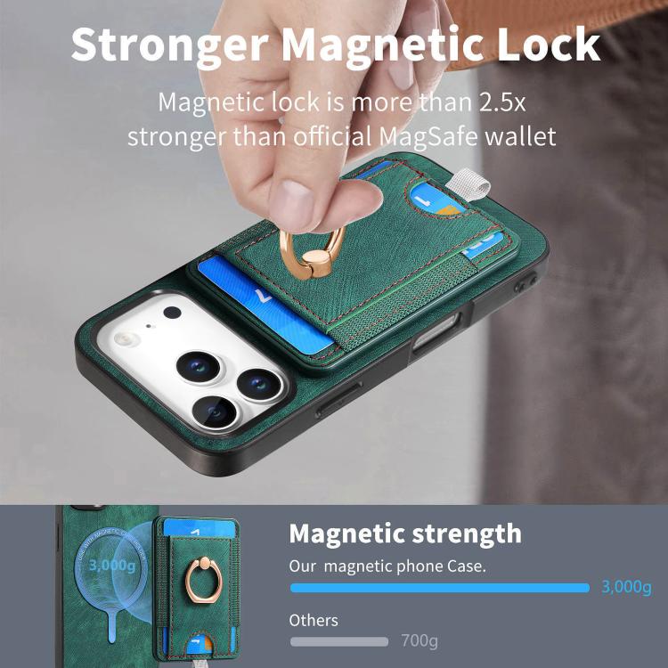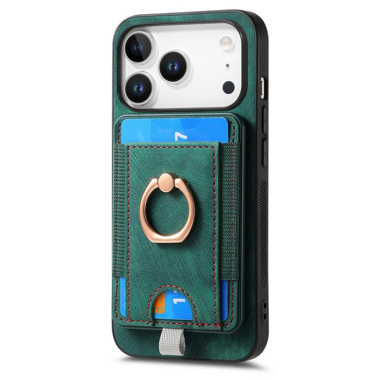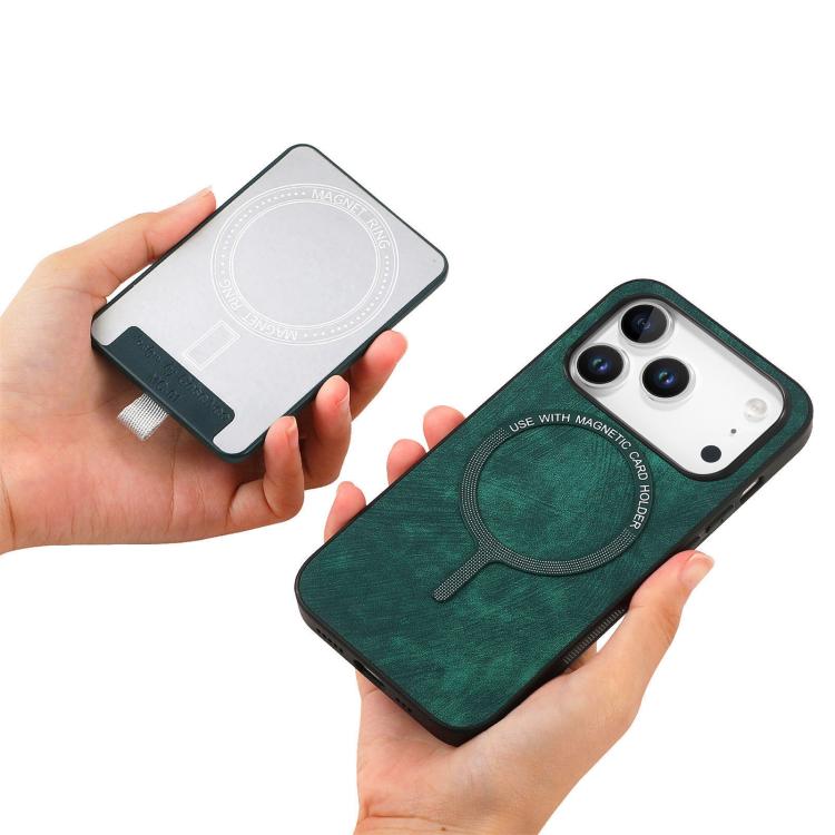 Funda de cuero con tarjetero magnético divisible para iPhone 17 Pro (verde)