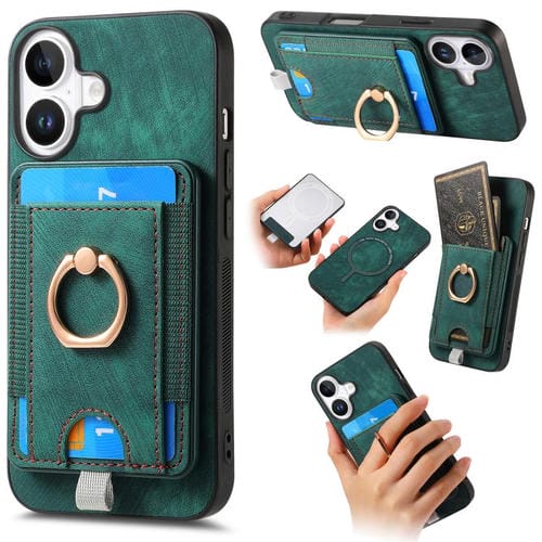 Funda de cuero con tarjetero magnético divisible para iPhone 17 (verde)