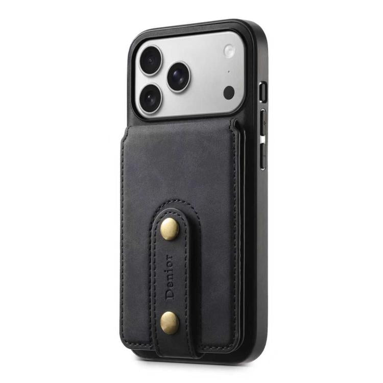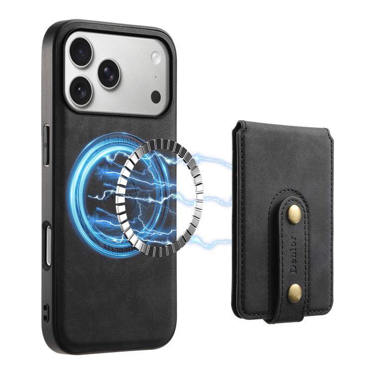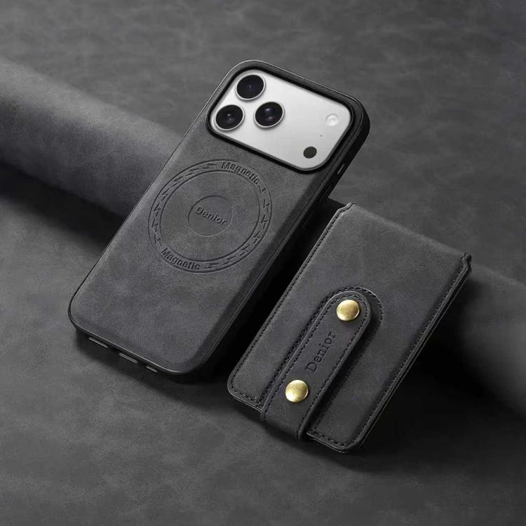 Funda de cuero con tarjetero magnético MagSafe para iPhone 17 Pro Max Denior D14 NK con diseño retro (negro)