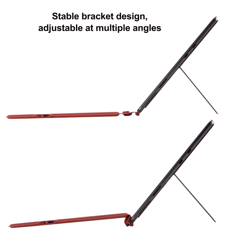 La funda de cuero con Teclado Inalámbrico Bluetooth retroiluminado modelo 2089D está diseñada específicamente para los dispositivos Microsoft Surface Pro 10 y Pro 9, siendo también compatible con Pro 8 y Pro X. Este accesorio combina protección y funcionalidad, ofreciendo un Teclado con Panel Táctil integrado que facilita la interacción mediante gestos de acceso directo. La Conexión Bluetooth permite una adsorción magnética sencilla y estable, mientras que la retroiluminación del Teclado asegura una visibilidad óptima en condiciones de baja iluminación. Además, cuenta con un espacio para almacenar lápices Táctiles, aunque sin Soporte para Carga del Lápiz Original. Su diseño en cuero color Rojo Vino aporta un acabado elegante y profesional.