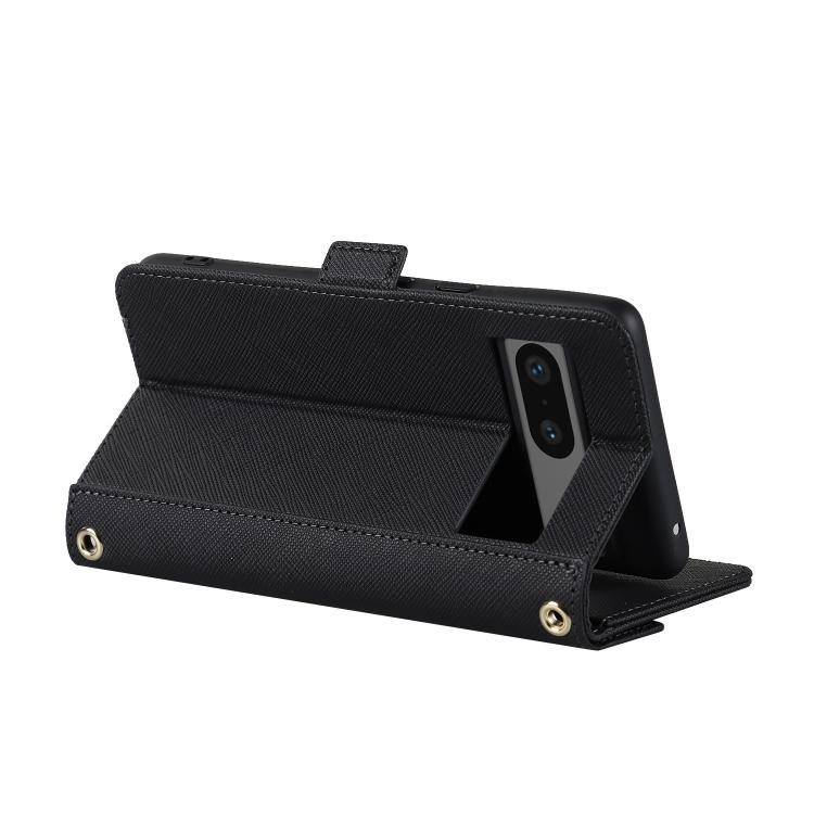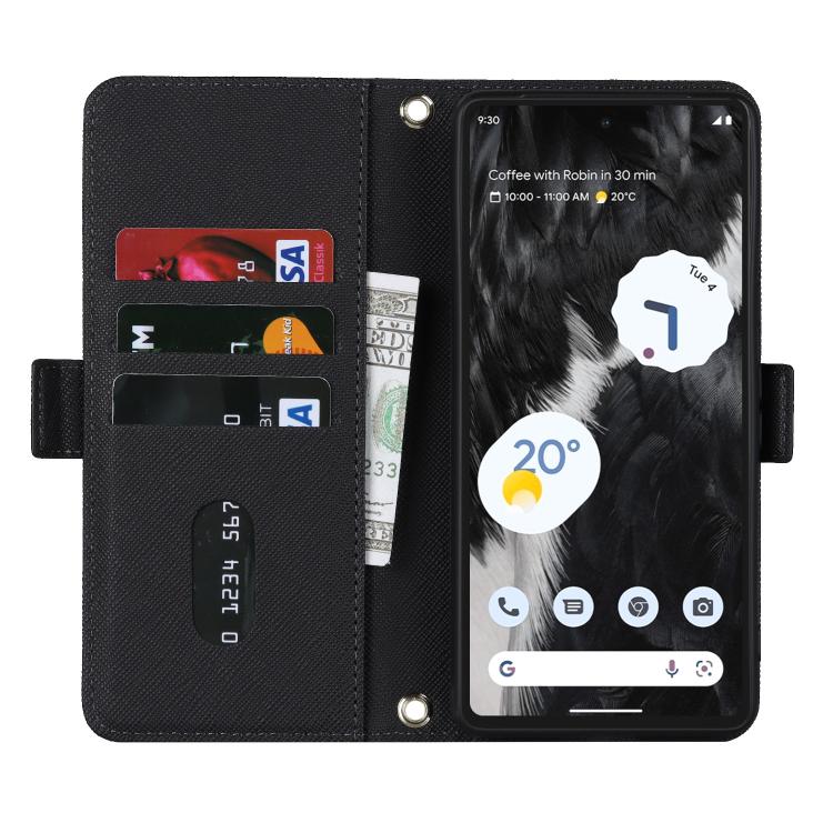 Funda de Cuero con Textura Cruzada y Cordón para Google Pixel 8 (Negra)