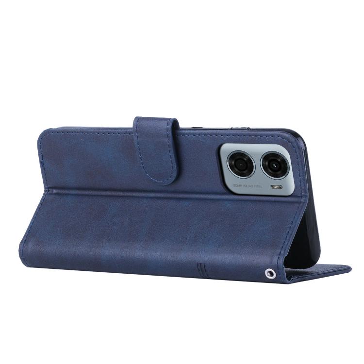 Funda de Cuero Textura de Becerro con Costuras para Motorola Moto G05 (Azul)