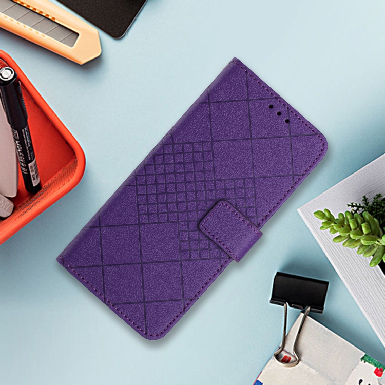 Funda de Cuero con Textura de Cuadrícula Rómbica para Motorola Moto G Play 2025 (Morado)