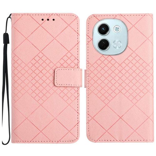 Funda de Cuero para Tecno Spark 30 5G con Textura Cuadrícula Rómbica (Rosa)