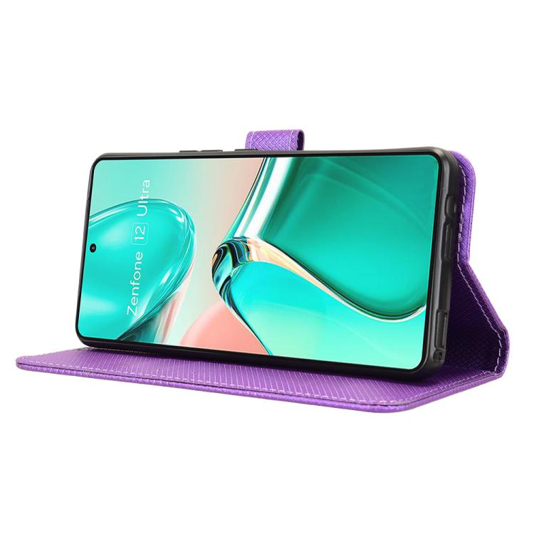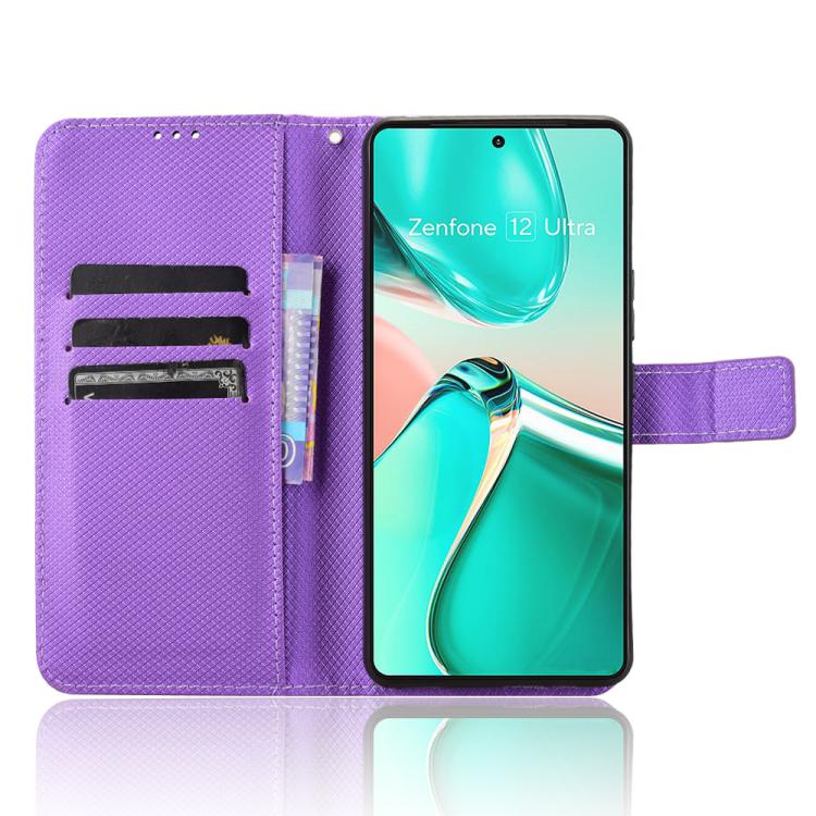 Funda de Cuero con Textura de Diamante para Asus Zenfone 12 Ultra (Morado)