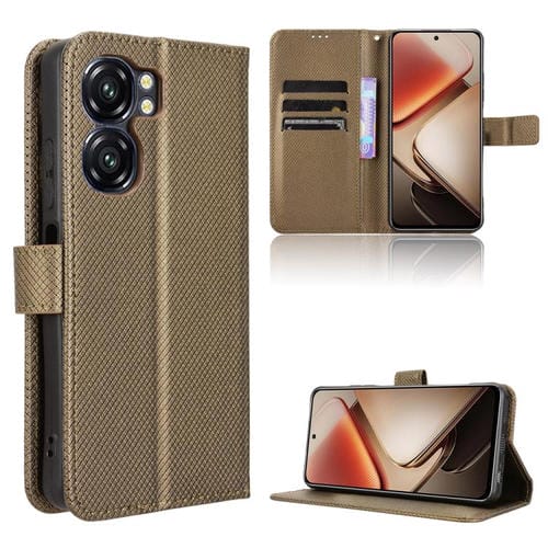 Funda de Cuero con Textura de Diamante para Oukitel C58 y C58 Pro (Marrón)