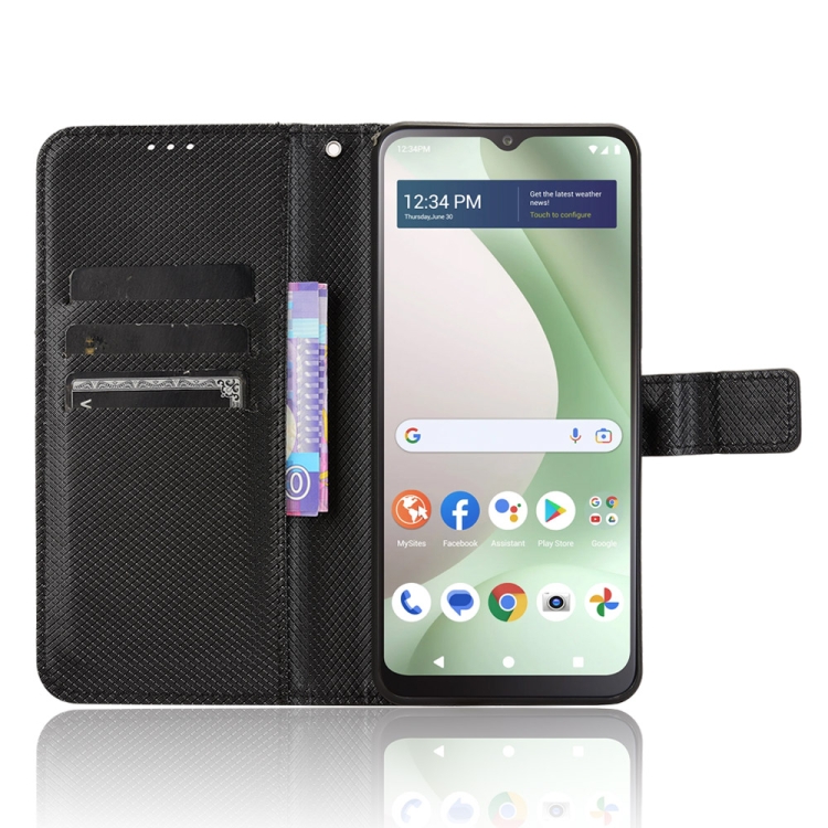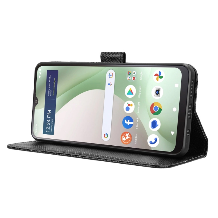Funda de cuero Blu View 5 textura diamante para teléfono (Negra)