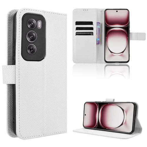 Funda de Cuero con Textura de Diamante para Oppo Reno12 5G Global (Blanca)