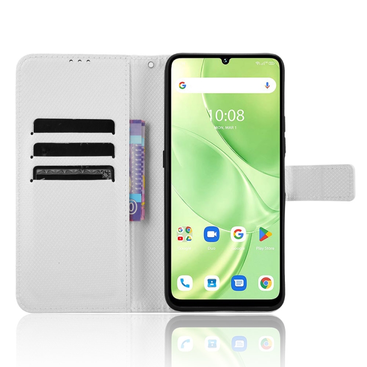 Funda de Cuero Textura de Diamante para Umidigi G9 5G Note 90 (Blanca)