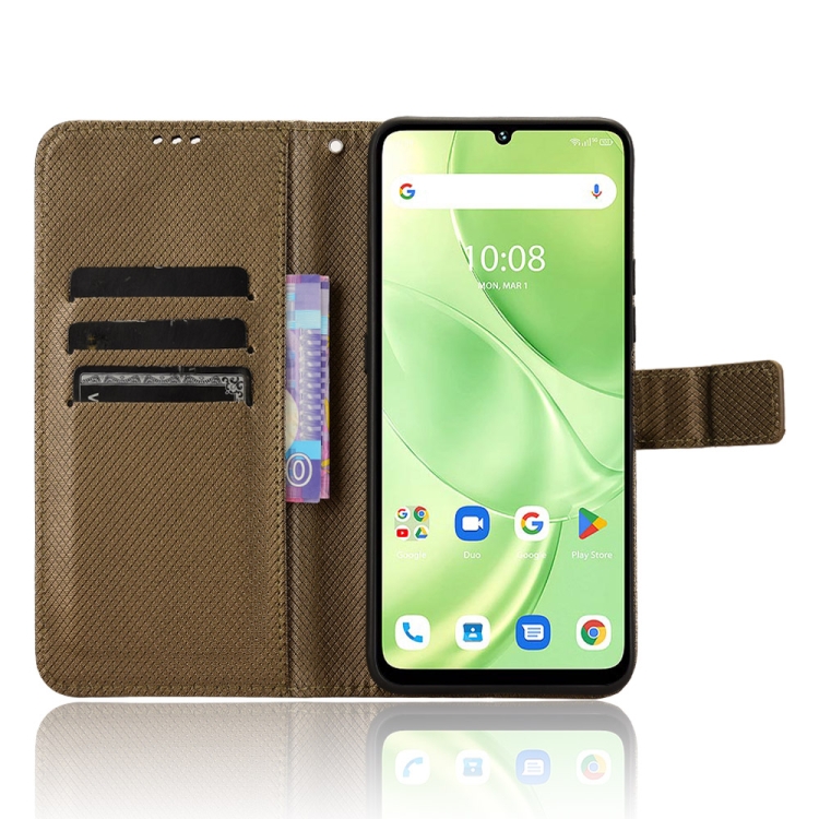 Funda de Cuero con Textura de Diamante para Umidigi G9 5G y Note 90 (Marrón)