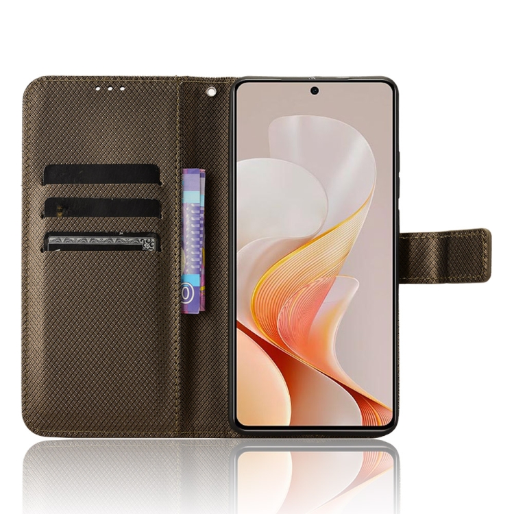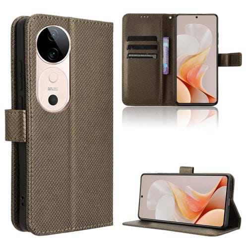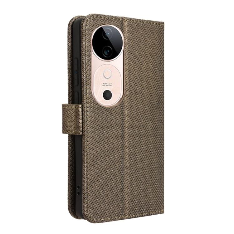 Funda de Cuero con Textura de Diamante para Vivo S19 5G (Marrón)