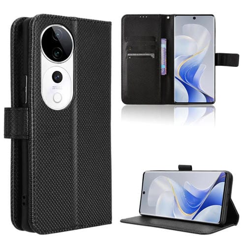 Funda de Cuero con Textura de Diamante para Vivo S19 Pro 5G / V40 5G (Negra)
