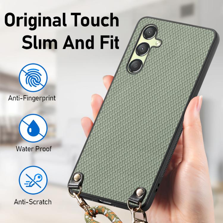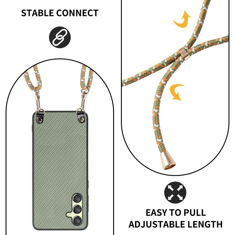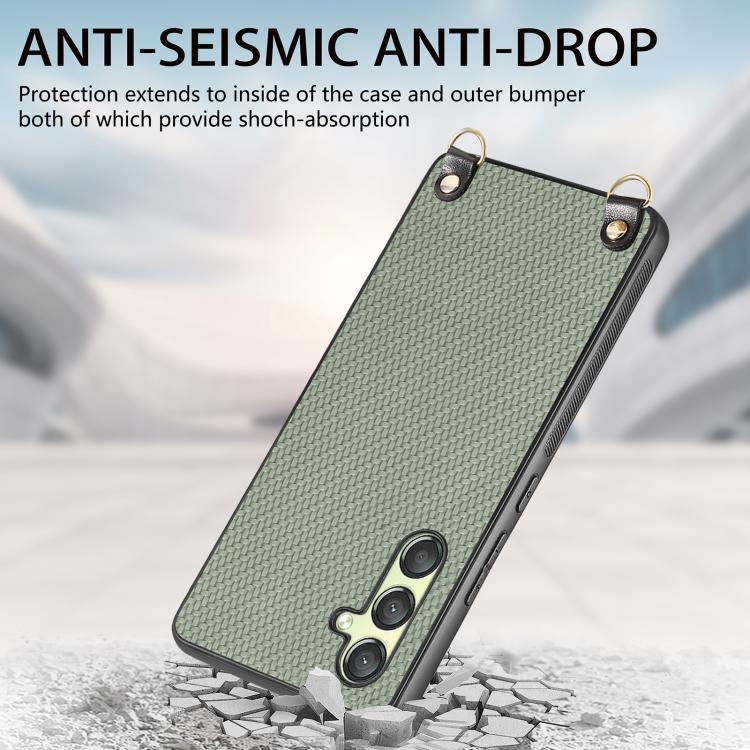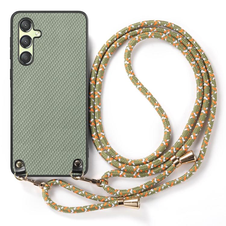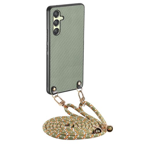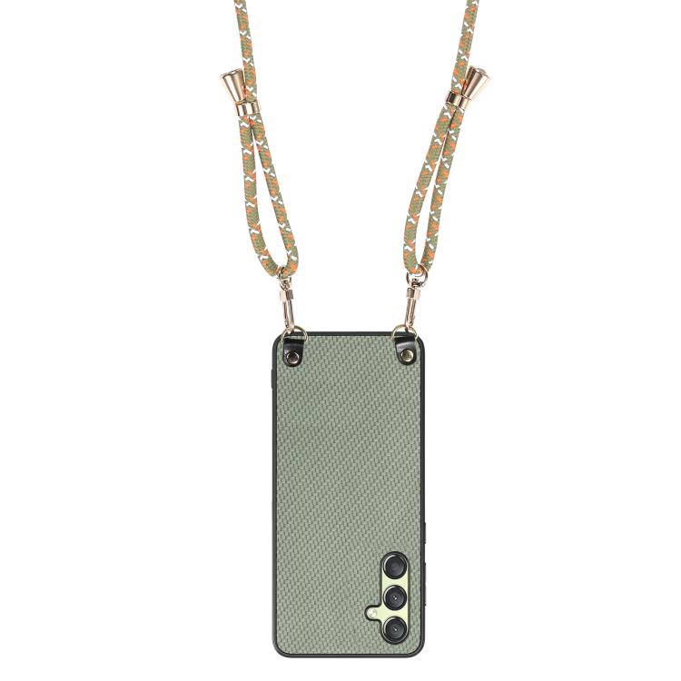 Funda para Samsung Galaxy A15 de Cuero con Textura de Fibra de Carbono y Correa Cruzada (Verde)