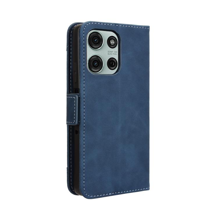 Funda de Piel con Textura de Becerro y Ranuras para Tarjetas para Motorola Moto G75 5G (Azul)
