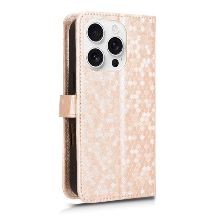 Funda de Cuero con Textura de Puntos en Forma de Panal para iPhone 16 Pro (Dorada)