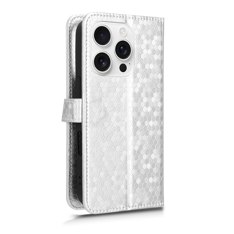 Funda de Cuero para iPhone 16 Pro Textura de Puntos en Forma de Panal (Plateada)