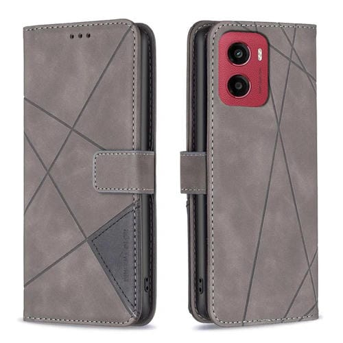 Funda de Cuero Motorola Moto G05 con Textura de Rombos y Hebilla Magnética (Gris)
