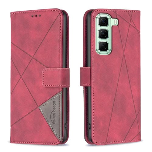 Funda Cuero Textura Rombos Hebilla Magnética para Infinix Hot 50 5G (Rojo)