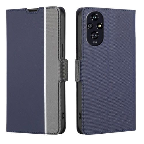 Funda de Cuero con Textura de Sarga y Botones Laterales para Honor 200 5G (Azul)