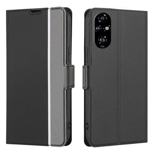 Funda de Cuero con Textura de Sarga y Botones Laterales para Honor 200 Pro 5G (Negra)