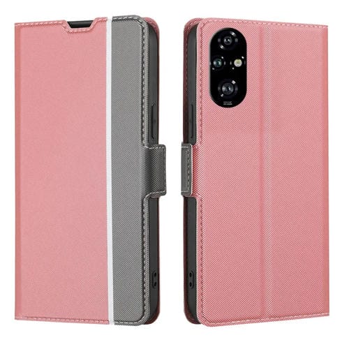 Funda de Cuero con Textura de Sarga y Botones Laterales para Honor 200 Pro 5G (Rosa)