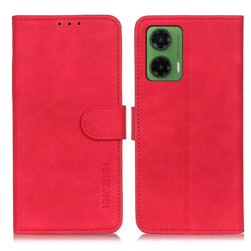 Funda de Cuero Khazneh para Motorola Moto G35 5G con Textura Retro (Rojo)