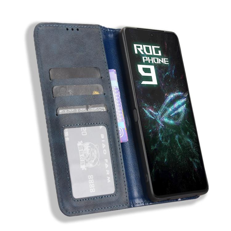Funda de Cuero con Textura Retro y Hebilla Magnética para Asus Rog Phone 9/9 Pro (Azul)