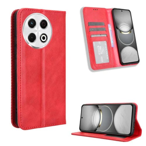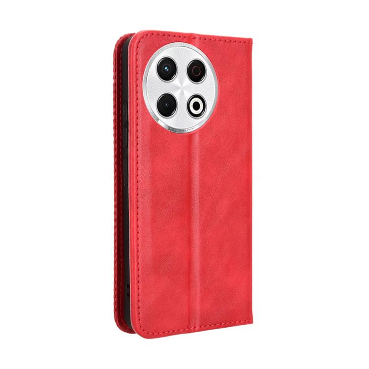 Funda de Cuero para Tecno Spark 30 Pro 4G con Textura Retro y Hebilla Magnética (Rojo)