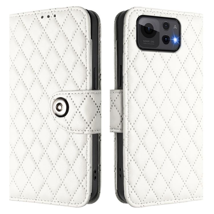 Funda de Cuero con Textura Rómbica y Cordón para Asus Zenfone 12 Ultra (Blanca)