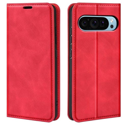 Funda de Cuero con Ventosa Magnética para Google Pixel 9/9 Pro Retro-Skin (Rojo)