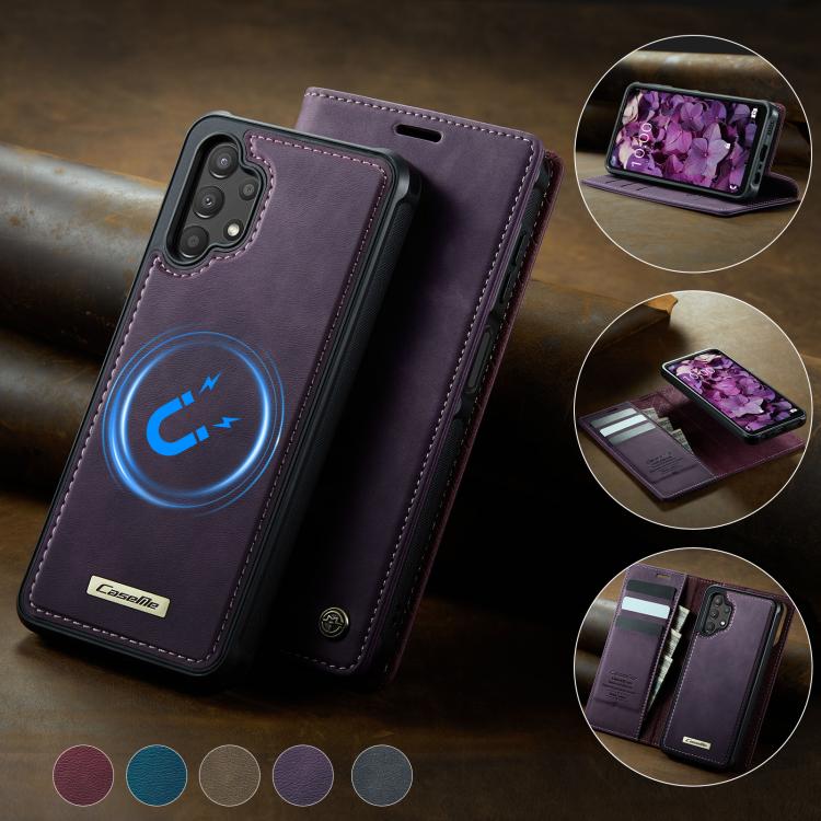 Funda de cuero desmontable CaseMe C49 con bloqueo RFID magnético para Samsung Galaxy A13/A04s (morado)