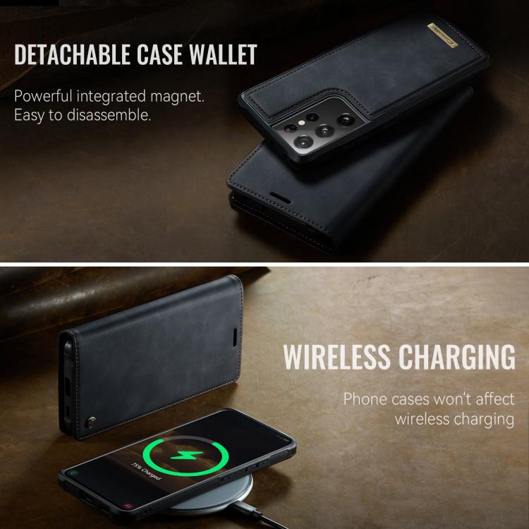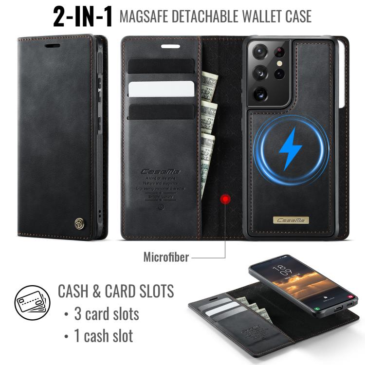 Funda de cuero desmontable con bloqueo RFID magnético para Samsung Galaxy S21 Ultra 5G CaseMe C49 (negro)