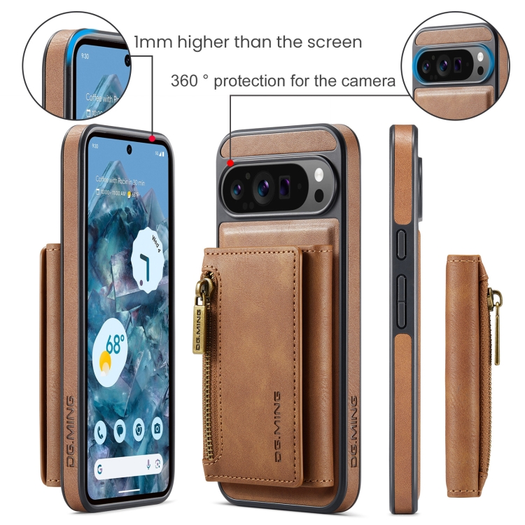 Funda de Cuero Desmontable con Cremallera Rfid para Google Pixel 9 Pro XL Dg.Ming M5 Series (Marrón)