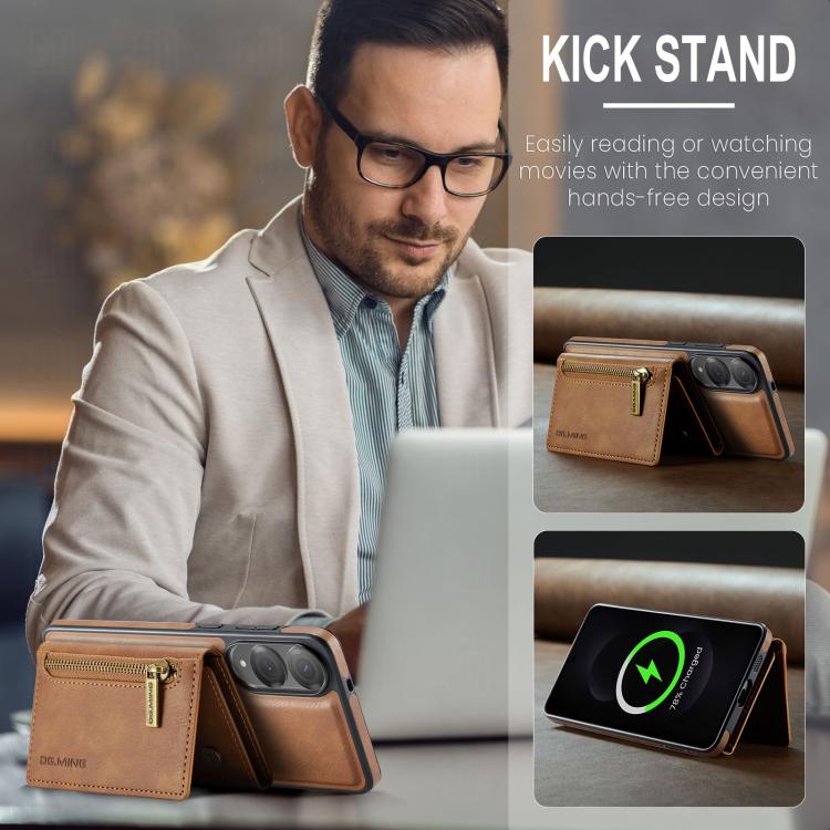 Funda de cuero desmontable con cremallera RFID para Samsung Galaxy S25 Edge 5G DG.MING M5 Series (marrón)