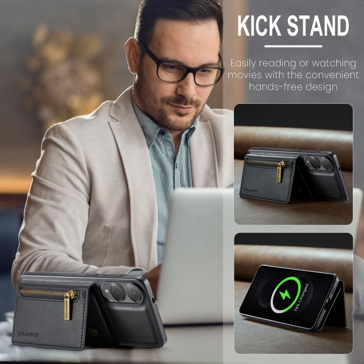 Funda de cuero desmontable con cremallera RFID para Samsung Galaxy S25 Edge 5G DG.MING M5 Series (negro)