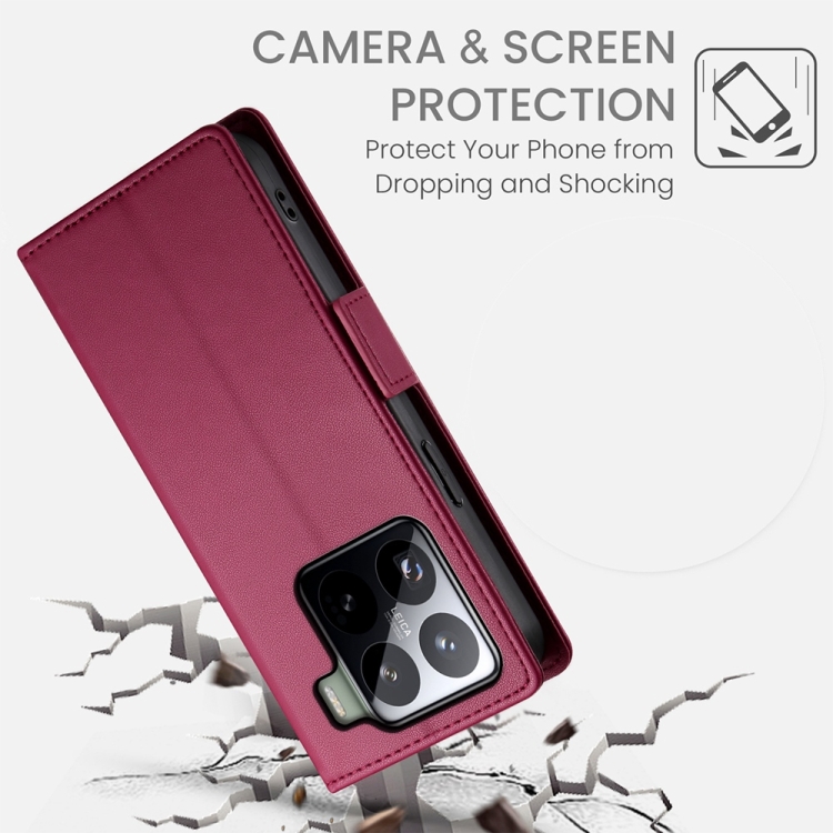 Funda Magnética De Cuero Esmerilado Con Hebilla Lateral Para Xiaomi 15 (Rojo Vino)