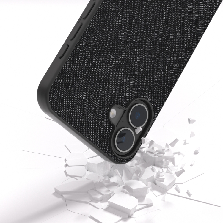 Funda para iPhone 16 Plus Abeel Cuero Genuino Textura Cruzada (Negro)