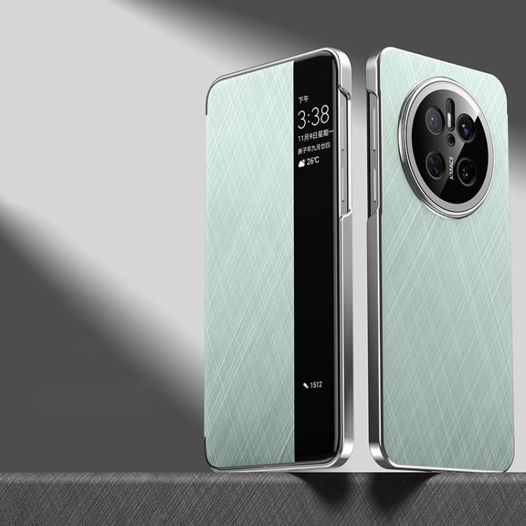 Funda de Cuero Liso con Ventana Smart View para Huawei Mate 70 (Cian-Azul)