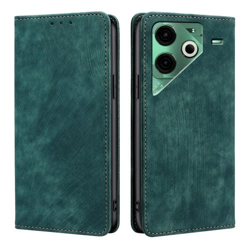 Funda de Cuero Magnética con Cepillo Antirrobo Rfid para Tecno Pova 6 Neo 4G (Verde)