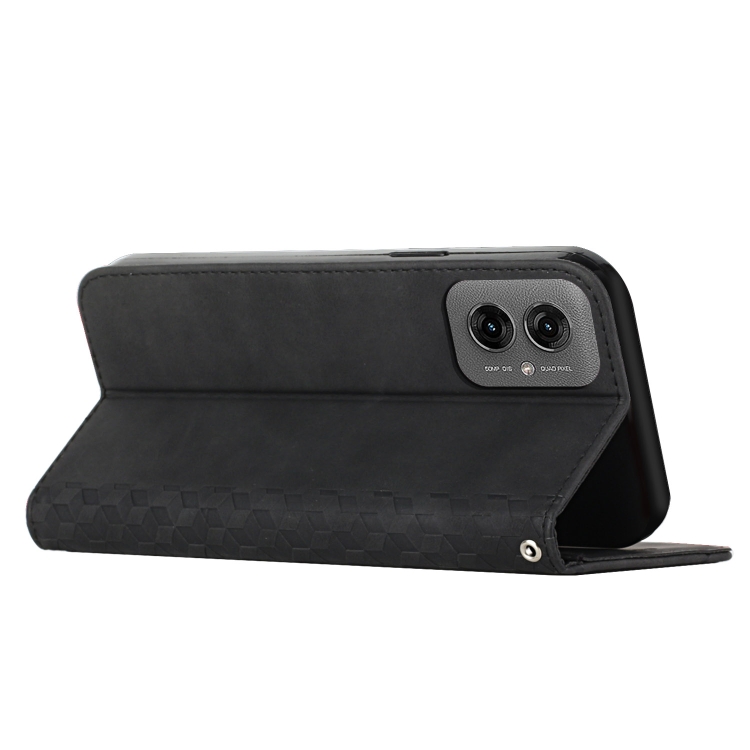 Funda de Cuero Magnética Motorola Moto G55 con Diseño de Diamante (Negra)