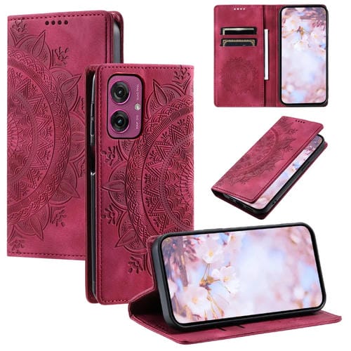 Funda de Cuero Magnética con Relieve Totem para Motorola Moto G55 (Rojo)