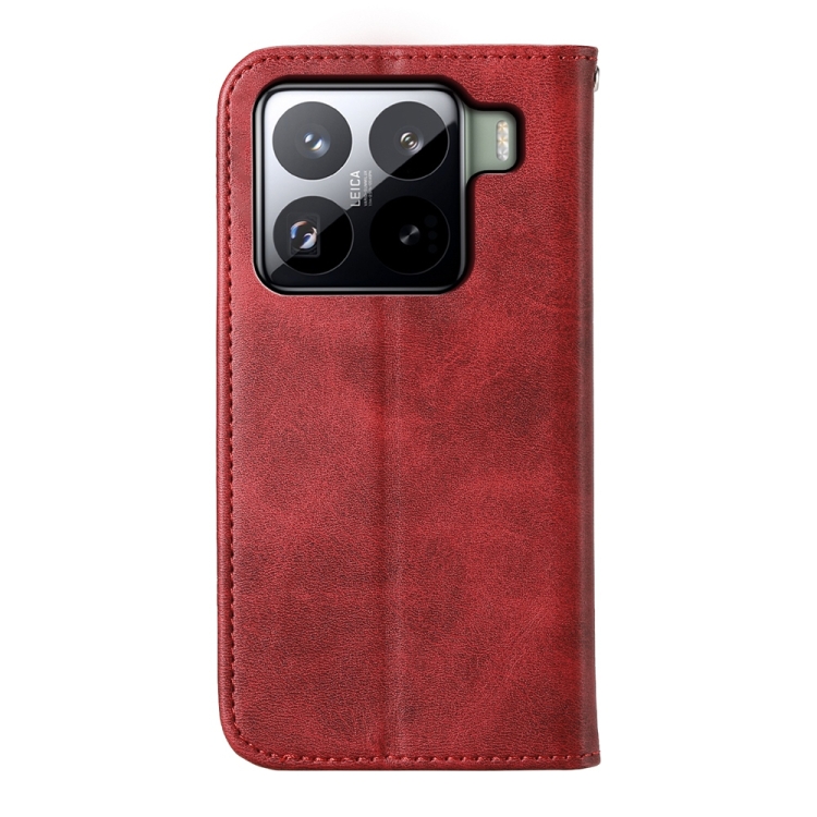 Funda De Cuero Magnética Con Textura De Becerro Y Rejilla Cúbica Para Xiaomi 15 Pro (Roja)