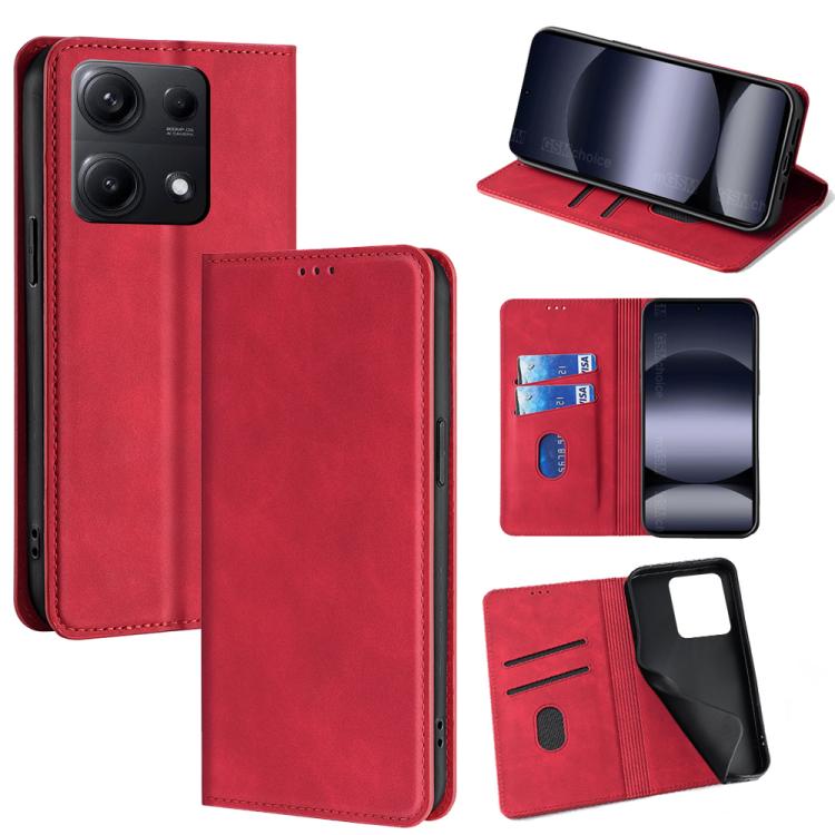 Funda de cuero magnética con textura de piel para Redmi Note 14S 4G (roja)