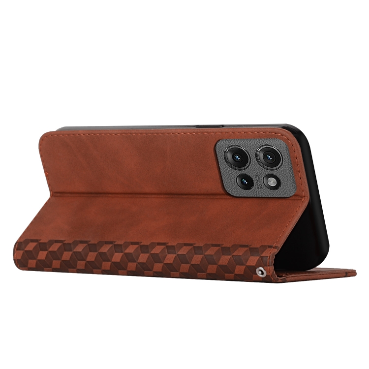 Funda de Cuero Magnética Motorola Edge 50 con Textura de Piel y Empalme de Diamantes (Marrón)