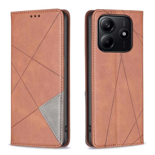 Funda de Cuero Magnética con Textura de Rombos para Redmi Note 14 4G (Marrón)