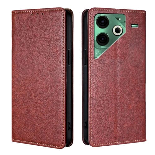 Funda de Cuero Magnética para Teléfono Tecno Pova 6 Neo 4G con Acabado Brillante (Marrón)