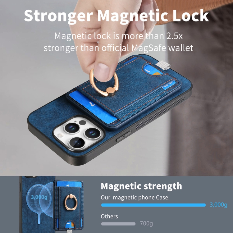 Funda de Cuero para iPhone 16 Pro Max con Tarjetero Magnético Divisible Retro (Azul)