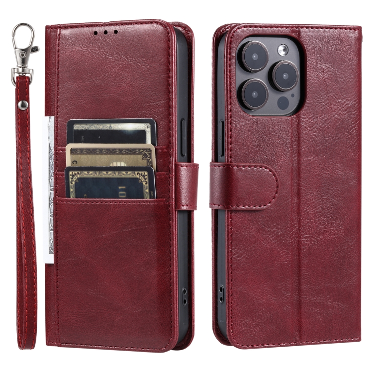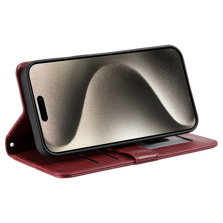 Funda de Cuero para Teléfono con Billetera para iPhone 16 Pro Max con Capacidad para 6 Tarjetas (Rojo Vino)