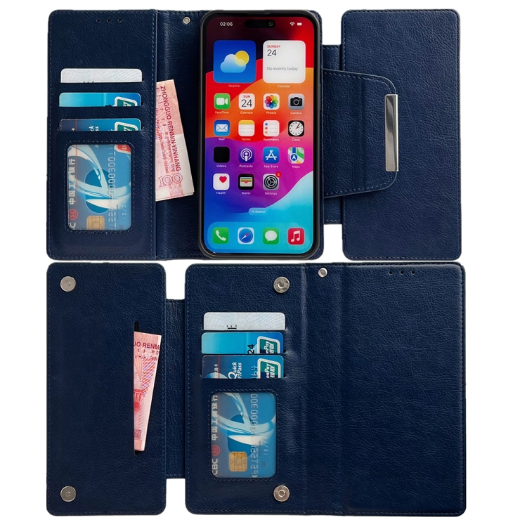 Funda de Cuero para Teléfono con Billetera Multifuncional para iPhone 16 Pro (Azul Real)