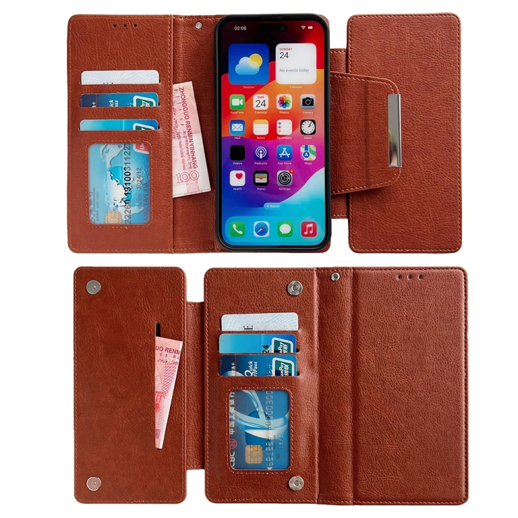 Funda de Cuero para Teléfono con Billetera Multifuncional para iPhone 16 Pro (Marrón)